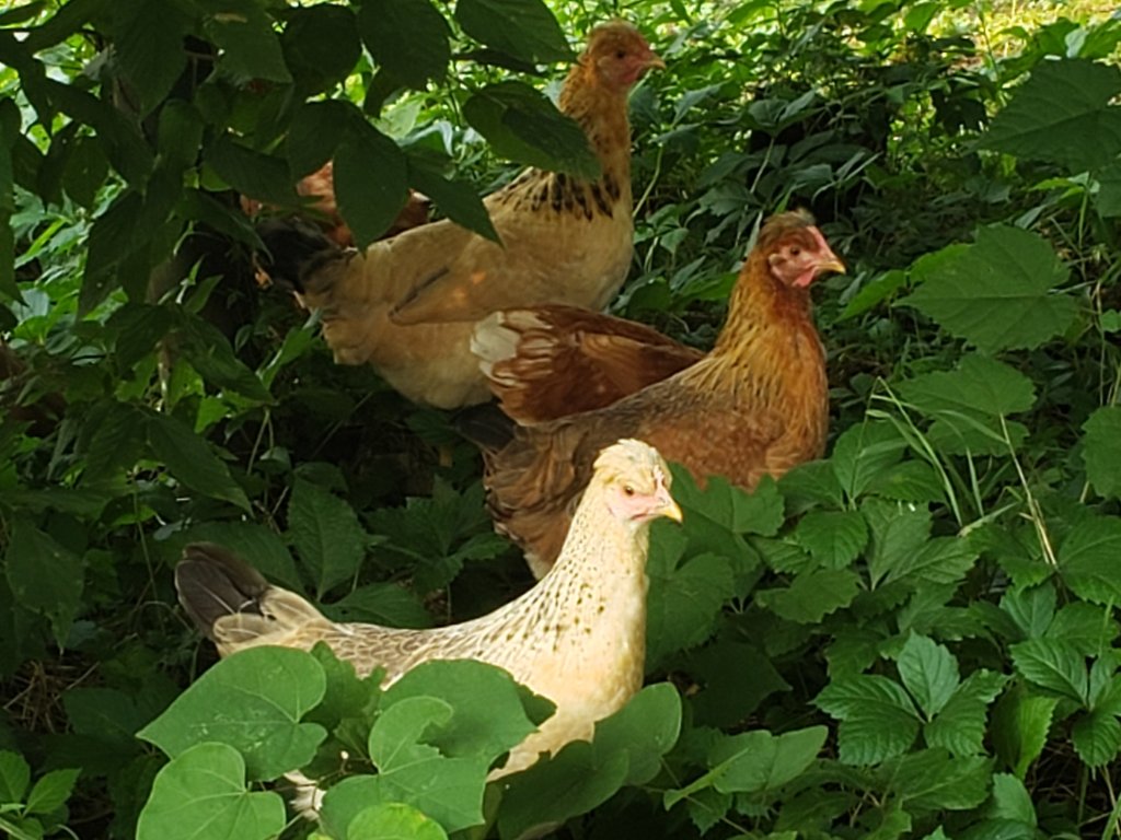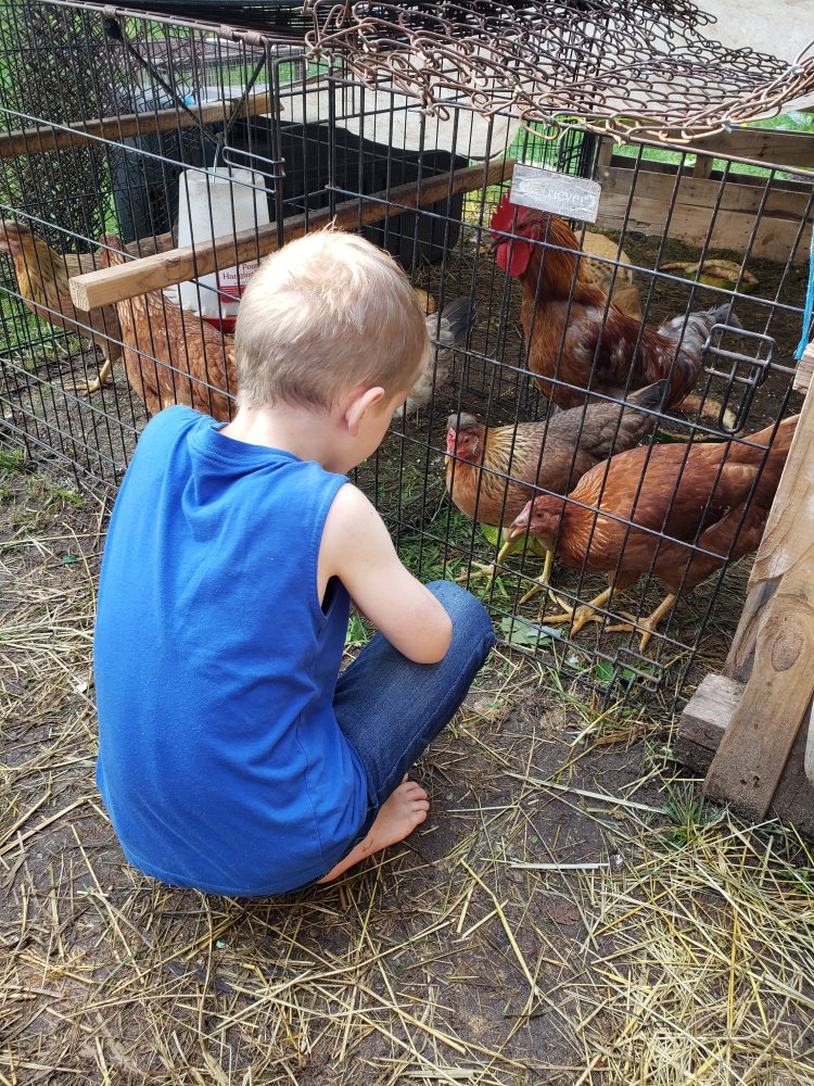 The baby chicks are about 7 weeks old now, so their coop door gets opened to let them run out of the henhouse. Feeder gets checked to make sure they ate overnight. We are still coop training because they’re being stubborn. So their feeder is in the henhouse to encourage them to go in to get dinner so we can close them in each night. Their water jar gets cleaned and refilled. They get a small helping of snacks if I have them and then they are left out to free range all day and get used to the big birds (and vice versa).