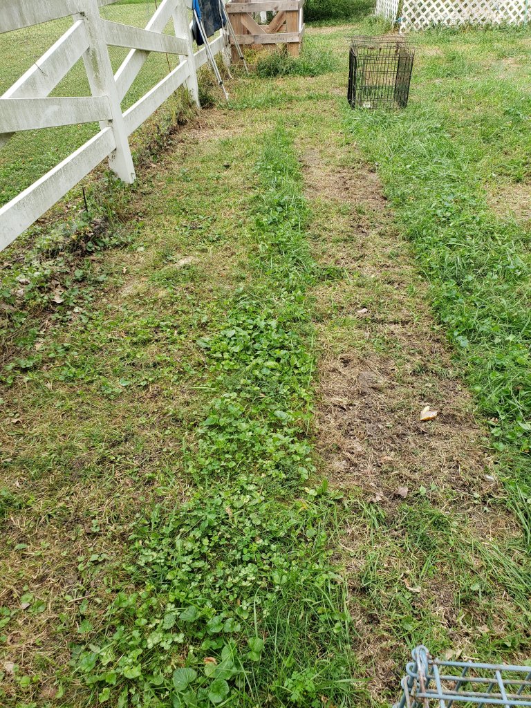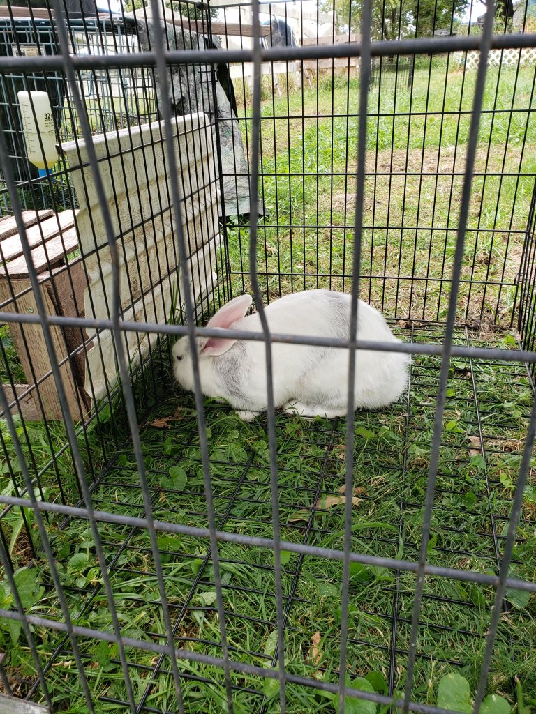 Rabbits left too long in one area can become damaging once they’ve eaten all of the grass. We have 2 that will begin to dig when they run out of grass and one that has figured out that if she’s in a cage with a large enough hole in the bottom that she can dig her way to freedom. So some of our cages have been flipped upside down so the small holes are on the bottom and the sunblock, be it a cage tray, a tarp, a piece of plywood, etc, then covers the large holes on the top so they can’t escape that way. I did make use of the diggers when getting the garden ready for this winter by allowing them to dig in the garden and turn the dirt.