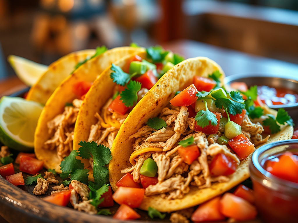- Toppings: shredded lettuce, diced tomatoes, salsa, sour cream, avocado