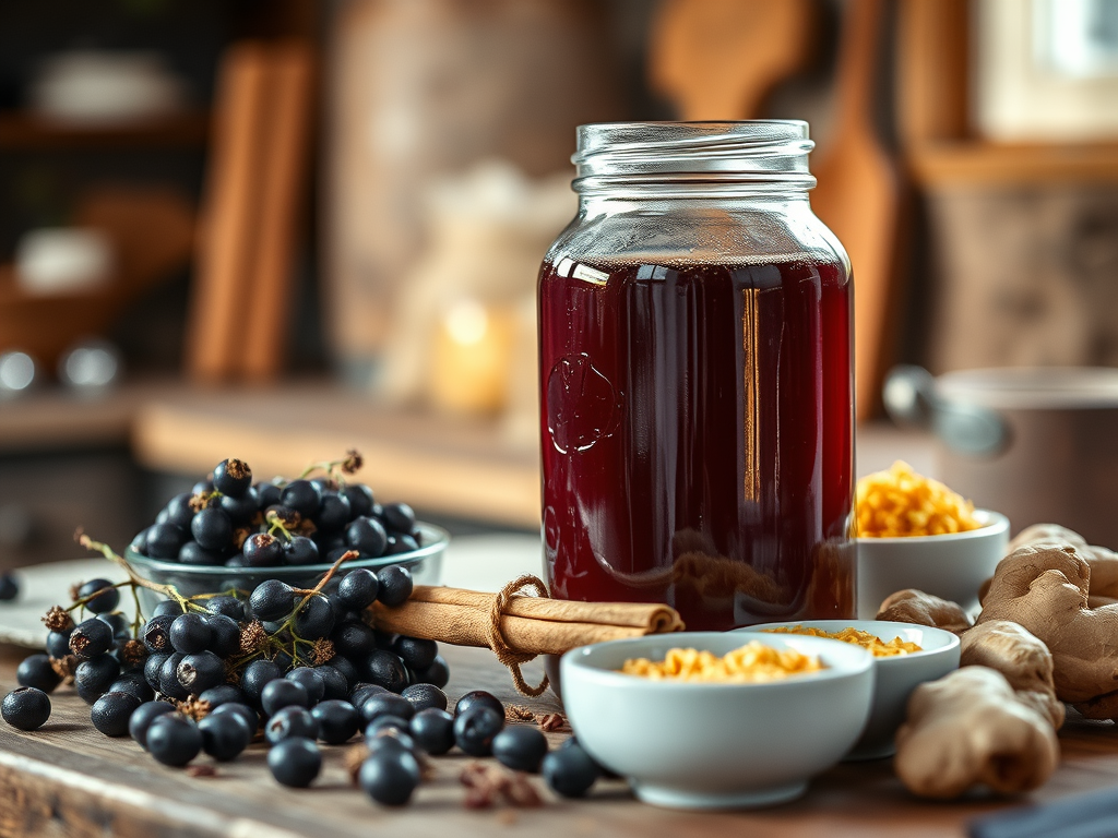 Elderberry syrup is a staple in natural cold and flu prevention. Rich in antioxidants and vitamins, elderberries help strengthen the immune system and shorten the duration of colds.