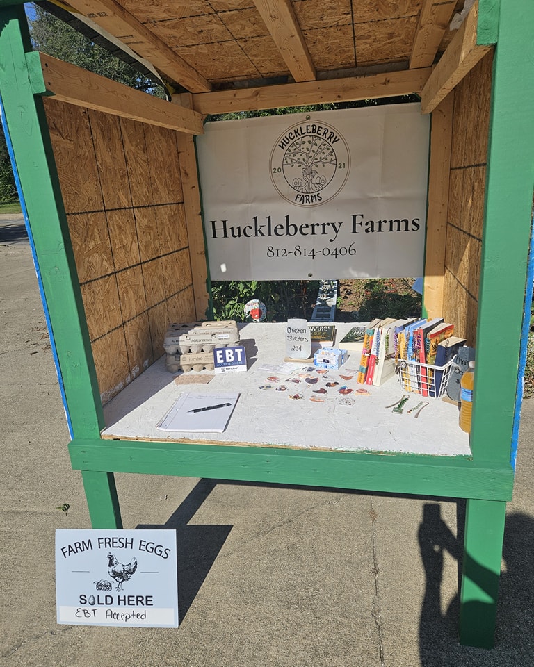 Farm Stand: Until we can accomplish the time, work, and money-intensive project of reviving the general store, we would like to offer a convenient “self-serve” farm stand here at the farm. This stand will provide easy access to our fresh, farm-raised products, allowing our community to enjoy the bounty of Huckleberry Farms on their own schedule.
